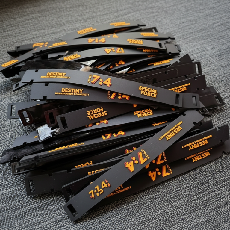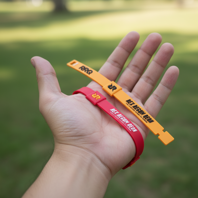 Cari gelang karet custom berkualitas tinggi untuk promosi bisnis, event perusahaan, atau kampanye sosial? Kami menyediakan rubber wristband yang bisa dipersonalisasi dengan logo, tulisan, atau desain unik sesuai kebutuhan Anda. Tersedia berbagai teknik finishing seperti debossed (ukir timbul), embossed (ukir dalam), dengan warna cerah yang tahan lama. Baik untuk souvenir pernikahan, merchandise konser, identitas event, maupun alat promosi murah